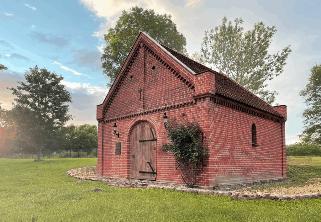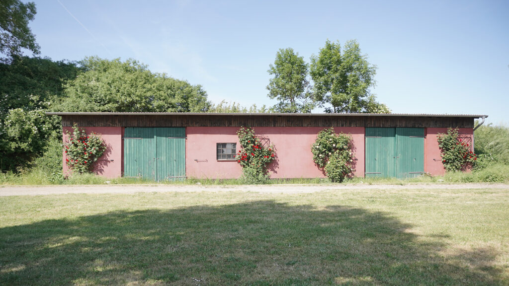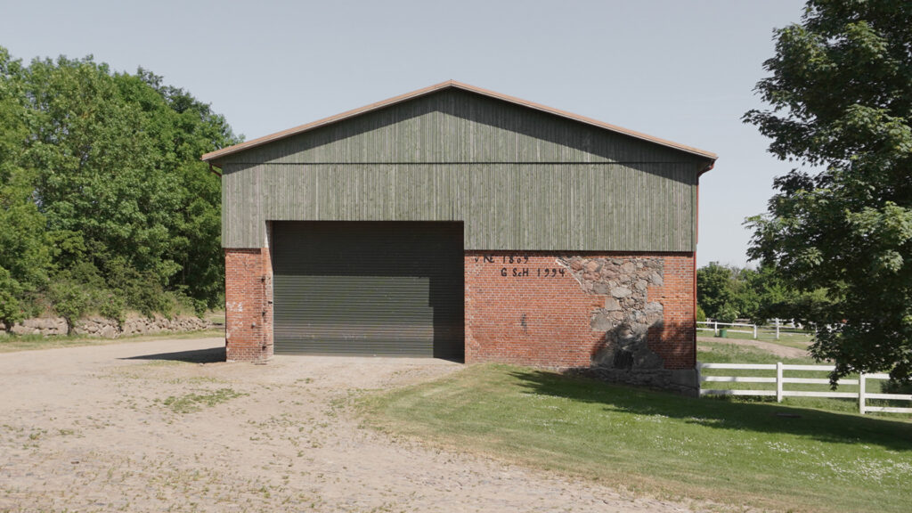 Die Feldsteinscheune, gebaut 1809, auf dem Weg zum Pferdestall.