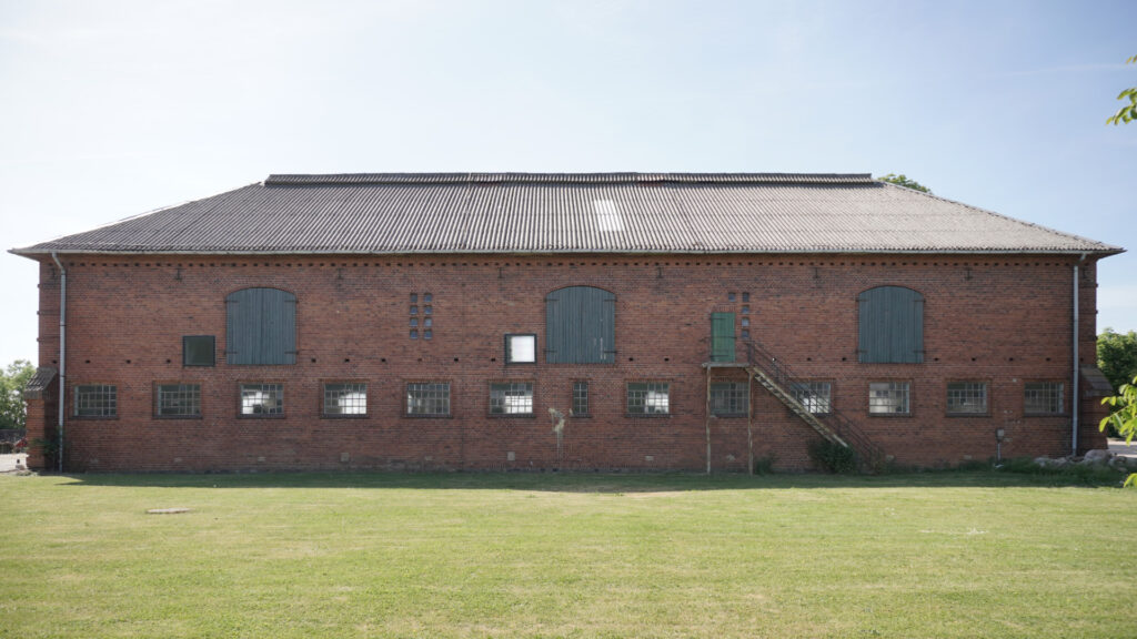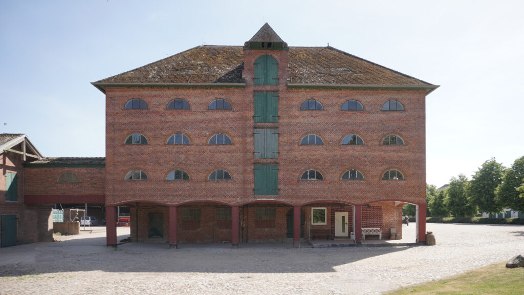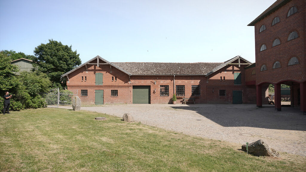 Der historische Kornspeicher im Zentrum der Gutsfläche.